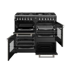 100cm dual fuel range cooker with a 7 burner gas hob, conventional oven & grill, multifunction main oven with TrueTemp™ digital thermostat, fanned second oven and dedicated slow cook oven