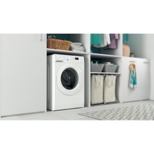 This Indesit freestanding front loading Washing Machine features: a spacious 8kg capacity. A fast, resource-efficient 1400 revolutions per minute spin speed. White colour.