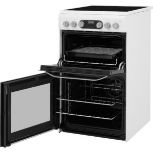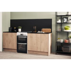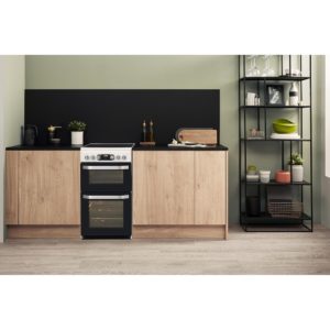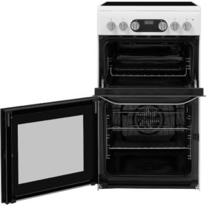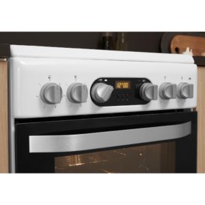 The Hotpoint HD5V93CCW/UK 50cm electric double cooker in white saves you time and energy with Circulaire Fan Cooking, which circulates hot air for an even temperature throughout the oven. Spend more time cooking, and less time cleaning, thanks to the special Catalytic panels that catch fat spits and grease, removing them naturally during the cooking process, making it easy to wipe away clean. It comes with a smoothly designed glass ceramic hob that has 4 radiant cooking zones that can be used for small or large pans. Thanks to its glass surface, it makes it very easy to clean once the cooking zones have cooled down. You can time your food precisely by setting the desired duration of your cooking with the handy Minute Minder, so you don’t have to keep checking your food. This electric double cooker stays cool on the outside thanks to the Cool Touch Door, protecting you with extra safety in the kitchen.