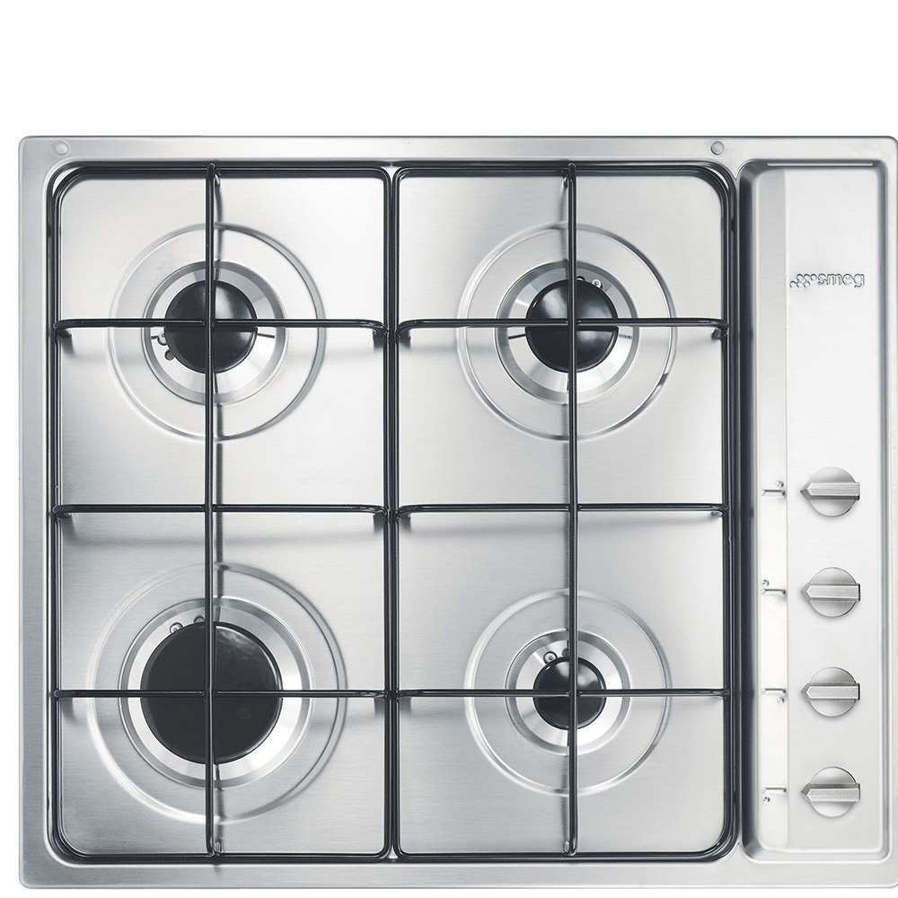 59cm Cucina Gas Hob, Stainless Steel, 4 burners, Automatic Ignition, Safety valves, Adaptable for LPG