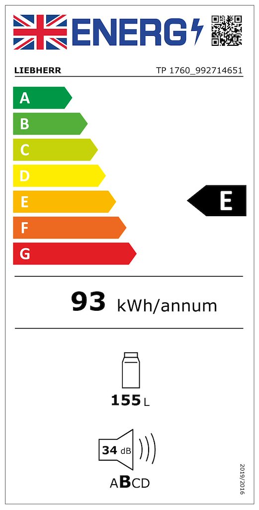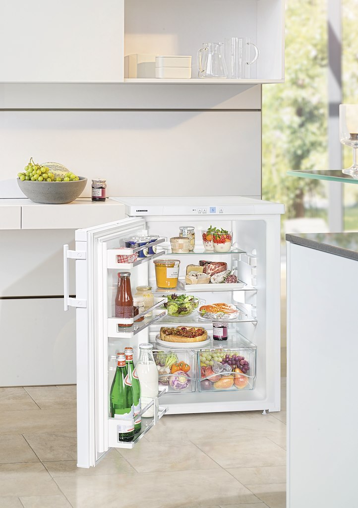 White Liebherr TP1760 Under counter fridge. The Liebherr TP1760 has 4 shelves with adjustable shelving for maximising your storage space as well as vegetable storage drawer for keeping produce fresh and cool; drinks storage; egg tray and dairy storage compartment for optimum preservation of cheese and milk products. When installing this appliance the Liebherr Under counter has dimensions of 60cm (width) x 85cm (height) x 66cm (depth) as well as reversible door configuration to ensure the fridge fits your kitchen conveniently. Liebherr provides you with a manufacturer’s warranty of 2 years for added peace of mind on your new refrigerator.